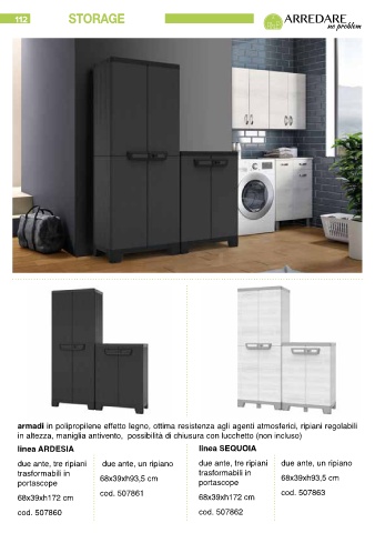armadi in polipropilene effetto legno, ottima resistenza agli agenti atmosferici, ripiani regolabili