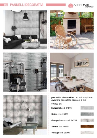 140 PANNELLI DECORATIVI pannello decorativo in polipropilene alveolare, serigrafato, spessore 3 mm 50x100 cm Industrial cod. 24575 Beton cod. 24586 Garage inverno cod. 24749 Saloon cod. 93551 Vintage cod. 96206